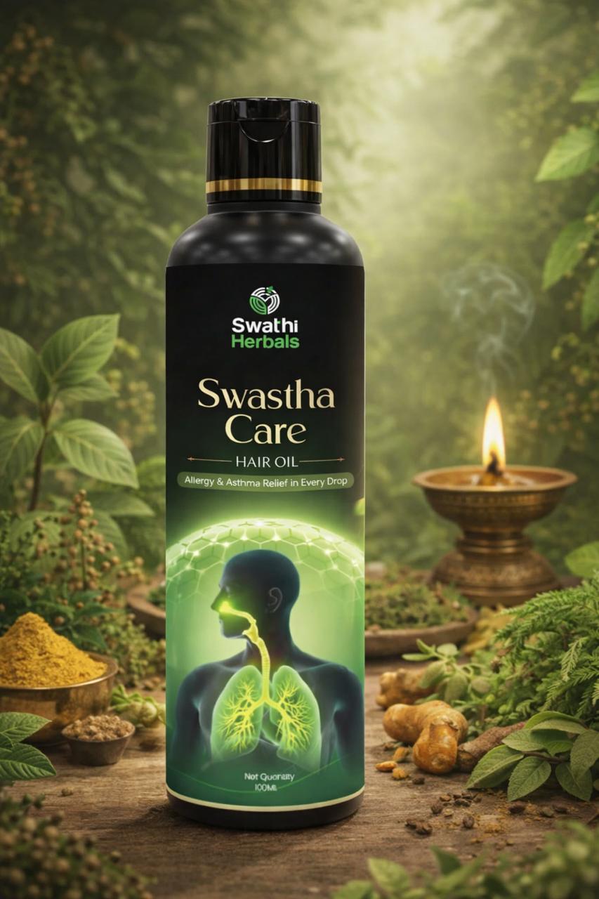 Swastha Care is an authentic Ayurvedic herbal remedy specifically formulated to treat asthma and allergic respiratory conditions. Applied topically on the hair and scalp, this unique delivery method is completely safe with no side effects - unlike oral medications. Proven effective for over 5,000+ patients.